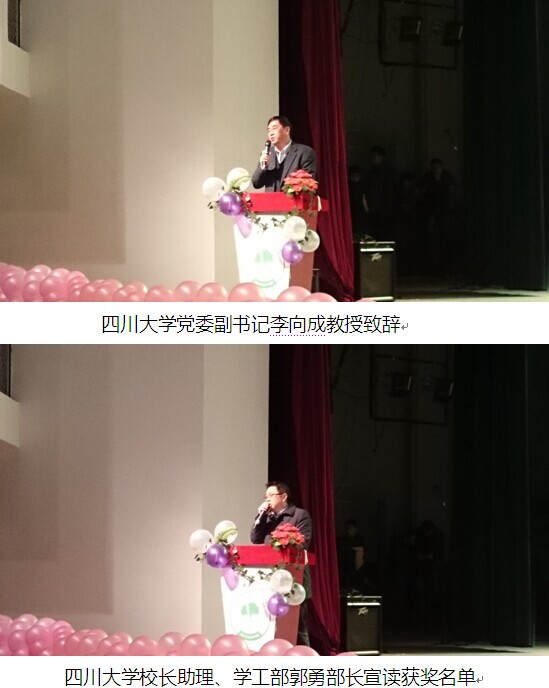 党委副书记李向成教授致辞,李向成副书记讲到化学与我们现代人的生活息息相关,鼓励在座的所有同学都要像谢校长讲到的,要有真学问。也希望我们所有热爱化学的同学们能够做好学问,并用自己所学做有益于社会的事!随后郭勇教授宣读获奖同学名单,领导们向同学们颁奖。至此,91视频